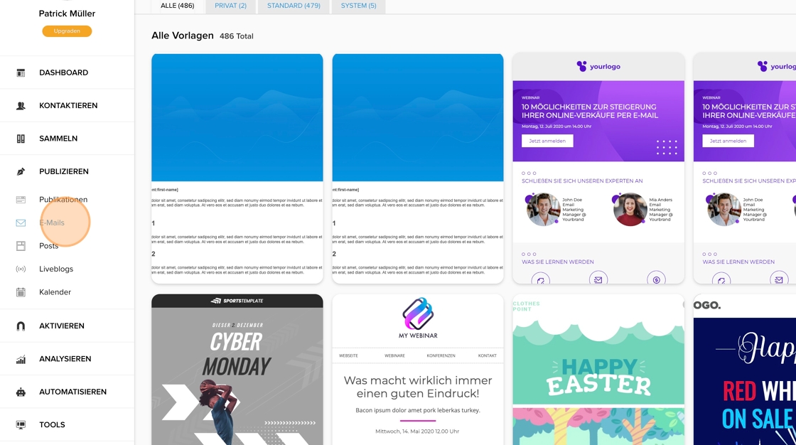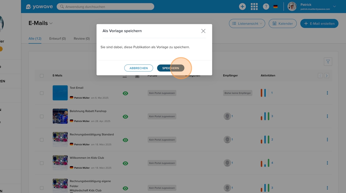 1. Open the Mailing Suite by clicking on “PUBLISH” - “Emails”.