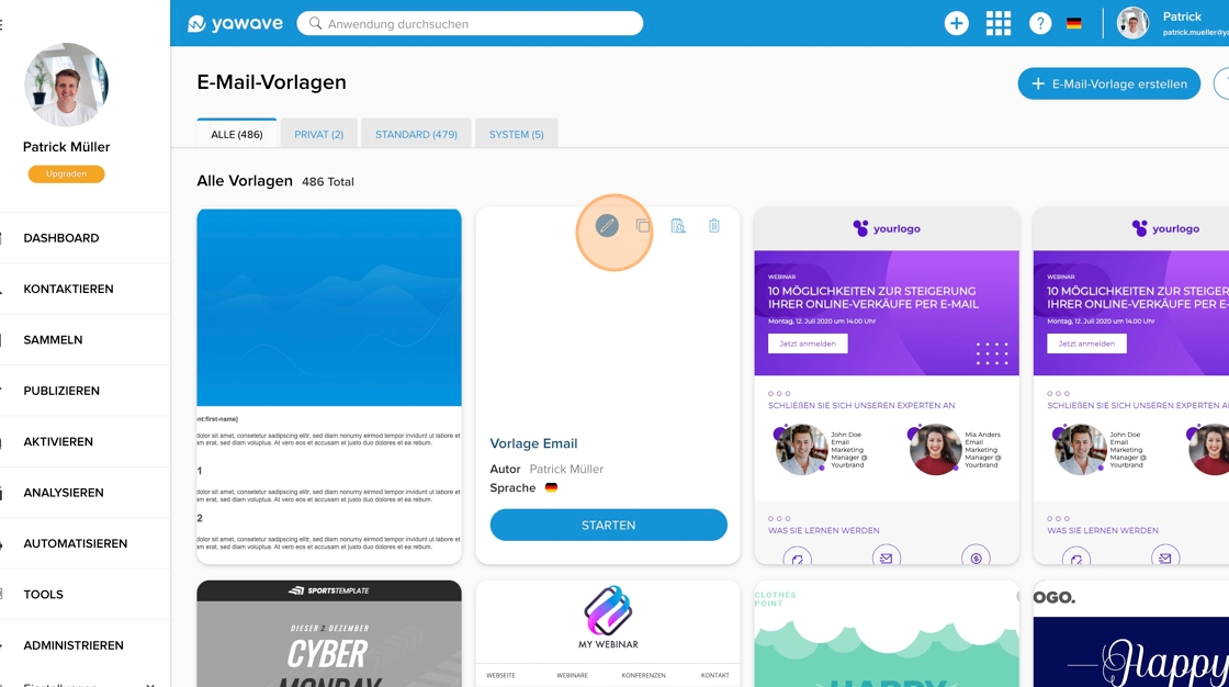 4. Edit the email saved as a template by clicking on the pencil icon.