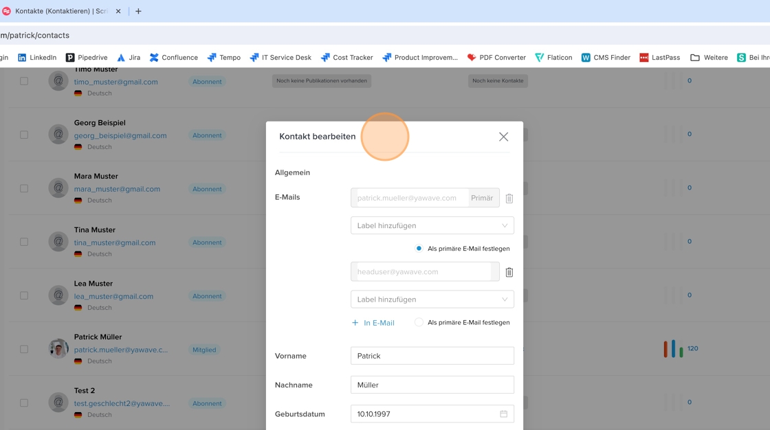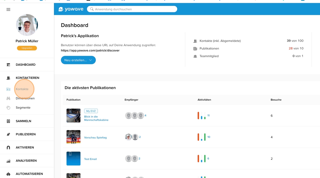 1. Open the contact management / CDP by clicking on “CONTACT” - “Contacts”.